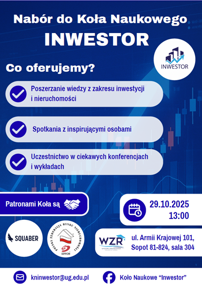 Przegapiłeś termin rekrutacji? Nie ma problemu. Możesz dołączyć do Koła w każdej chwili. Wystarczy wypełnić formularz deklaracji i przesłać go na adres kninwestor@ug.edu.pl