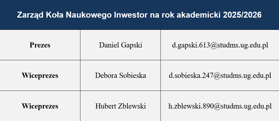 Głównym celem działalności członków koła jest poszerzanie wiedzy z zakresu inwestycji, nieruchomości oraz rynku nieruchomości, ale także tematyki ogólnospołecznej. Dzięki pracy w Inwestorze studenci doskonalą swoje umiejętności związane z pracą w grupie oraz sztuką autoprezentacji. Mają możliwość udziału w tematycznych warsztatach i szkoleniach, jak i sprawdzenia się w roli organizatora konferencji naukowych. Organizowane przez Inwestora wydarzenia są doskonałym materiałem dydaktycznym dla innych studentów, pracowników UG oraz osób z zewnątrz.